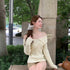 V Collar Knitted Long Sleeve Top (Pink, Beige)