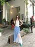 Lora Side Cut Mix Mesh Blue Long Skirt (M)