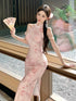 Pink Mesh Sleeve Cheongsam CD016 Long Dress (M)