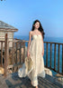 Floral Bareback Beige Tube Long Dress