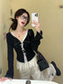 White Ribbon Black Top + White Laces Inner Top Two Piece Set