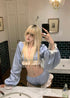 Blue Stripe Crop Top + Mini Shorts Two Piece Set