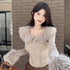 Furry Collar Khaki Grey Cardigan
