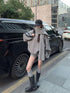 Grey Knitted Top + Shorts + Scarf Three Piece Set