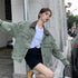 Army Green Denim PU Leather Collar Jacket