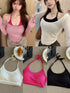 Classic U Collar Strap Top (Pink, White)