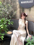 Cream White Cheongsam Top CD038 + Pants Two Piece Set (S, M)