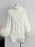 Fur Sleeve Multi Wear Collar Knitted Top (Cream, Brown)