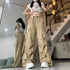 High Waist Strap Cargo Long Pants (Red, Black, Khaki)
