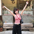 Round Lace V Collar Ginham Top With Pad 胸垫 (Yellow, Red)