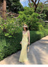 Side Flare Strap Mix Lace Long Dress (Yellow, Black)